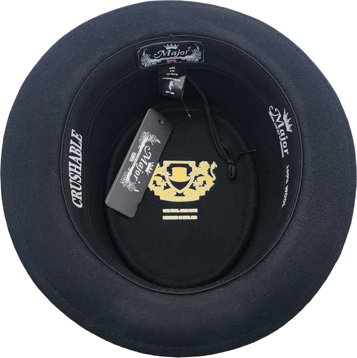 The Classic Pork Pie Hat with a circled crown is made from luxurious wool felt. A brilliant hat that has always remained in fashion. The Pork Pie hat will compliment any look, with its style adapting design. It is wrapped with a ribbon band side bow. It offers superior comfort, with a very unique style.