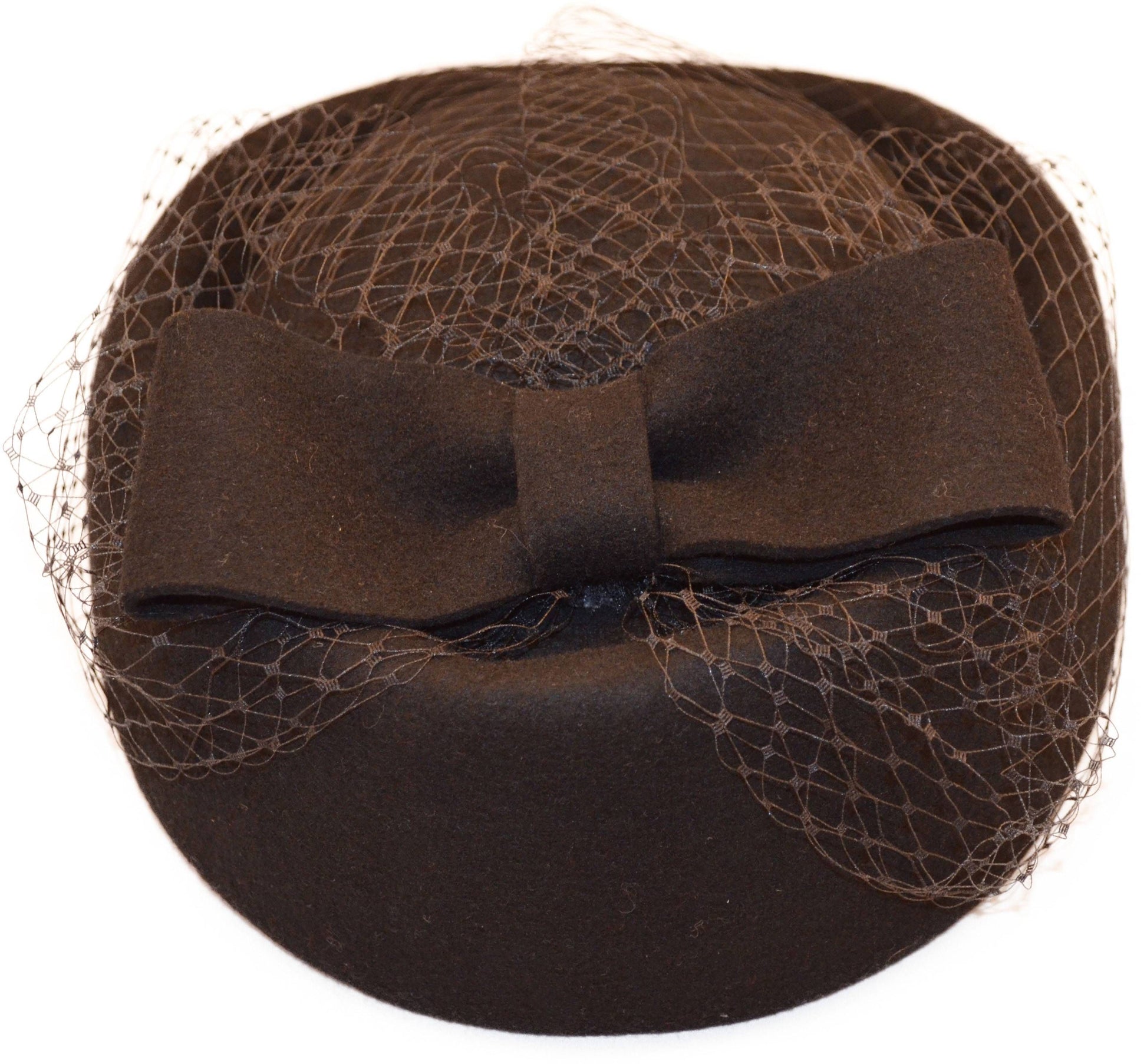 Womens Wool Felt Veiled Pillbox Hat. Adjustable Size